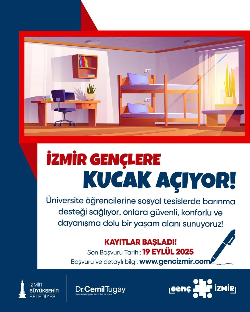 Kadın ve Aile Hizmetleri Dairesi Başkanlığı Gençlik Çalışmaları Şube Müdürlüğü tarafından yürütülen “İzmir Gençlere Kucak Açıyor” projesi kapsamında tesis, 2025-2026 eğitim yılı boyunca 72 kız öğrenciyi ağırlayacak. Yoğun talep gören tesise başvurular, www.gencizmir.com üzerinden 19 Eylül tarihine kadar yapılabilecek.