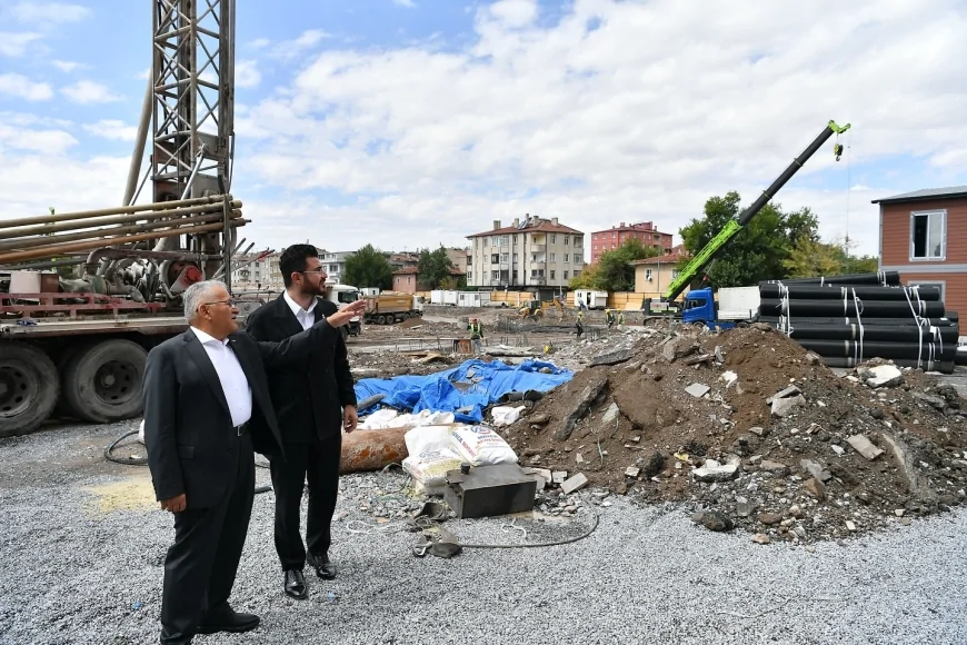 Büyükkılıç, saha ziyareti sırasında çalışmalar hakkında firma yetkililerinden bilgi aldı. Kendisine Kentsel Dönüşüm Daire Başkanı Hasan Cihat Türkmen ve İmar ve Şehircilik Daire Başkanı Ali Süslü de eşlik etti.